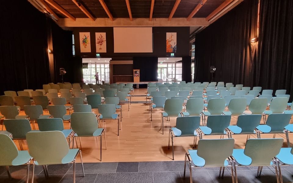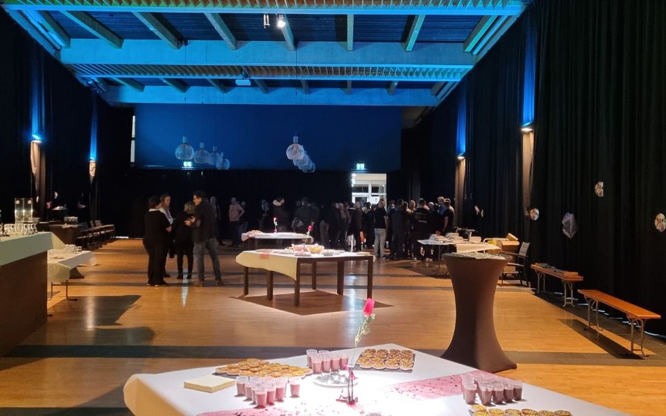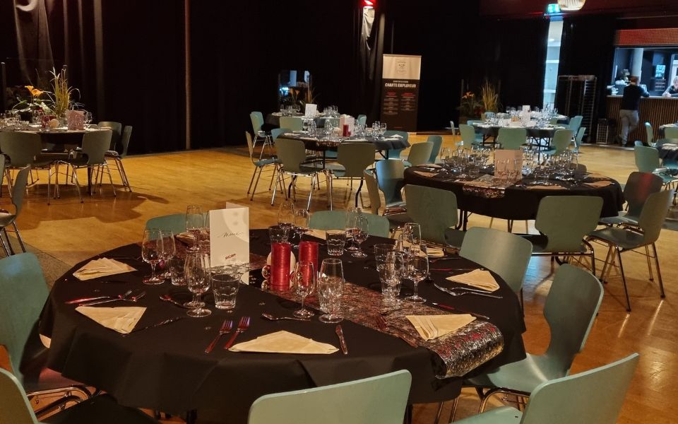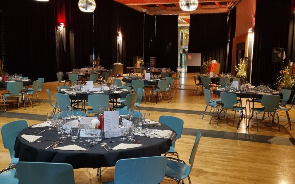 Accueillez jusqu’à 500 personnes pour un repas dans notre salle omnisports transformée pour l’occasion en salle de repas.