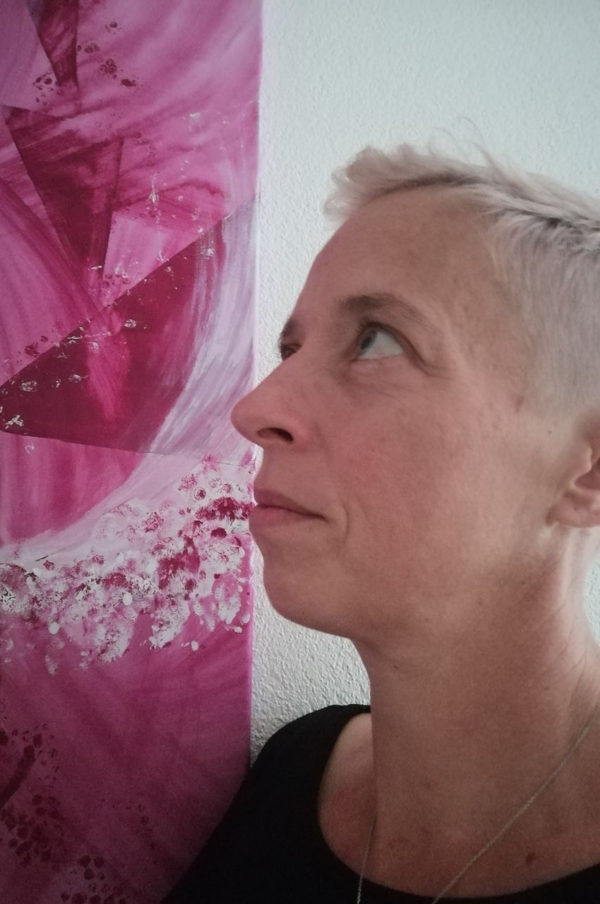Lors d’un atelier qu’elle animait, son expérience, ses conseils, son partage m’ont redonné l’envie et la confiance de reprendre les pinceaux, cette envie est devenue essentielle pour moi.