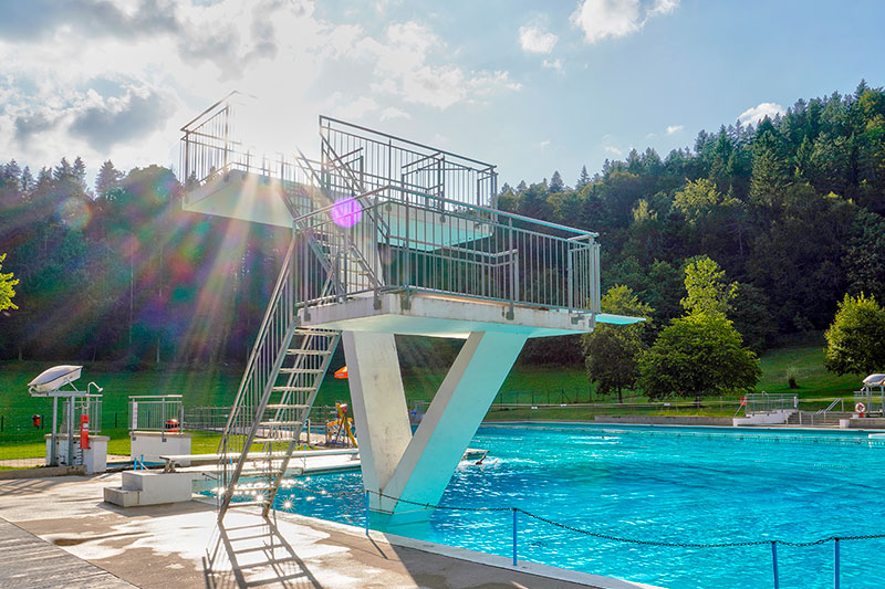 - Plongeoir composé de 3 hauteurs (1m, 3m et 5m)