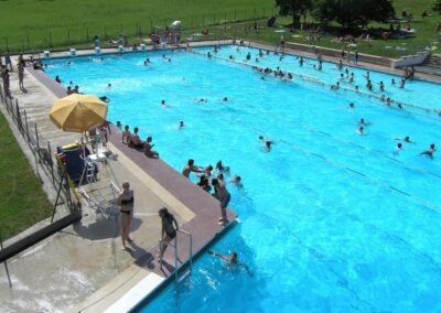 - Bassin de 25 mètres de long homologué avec 4 lignes d’eau. Profondeur de 1.80m à 2m.